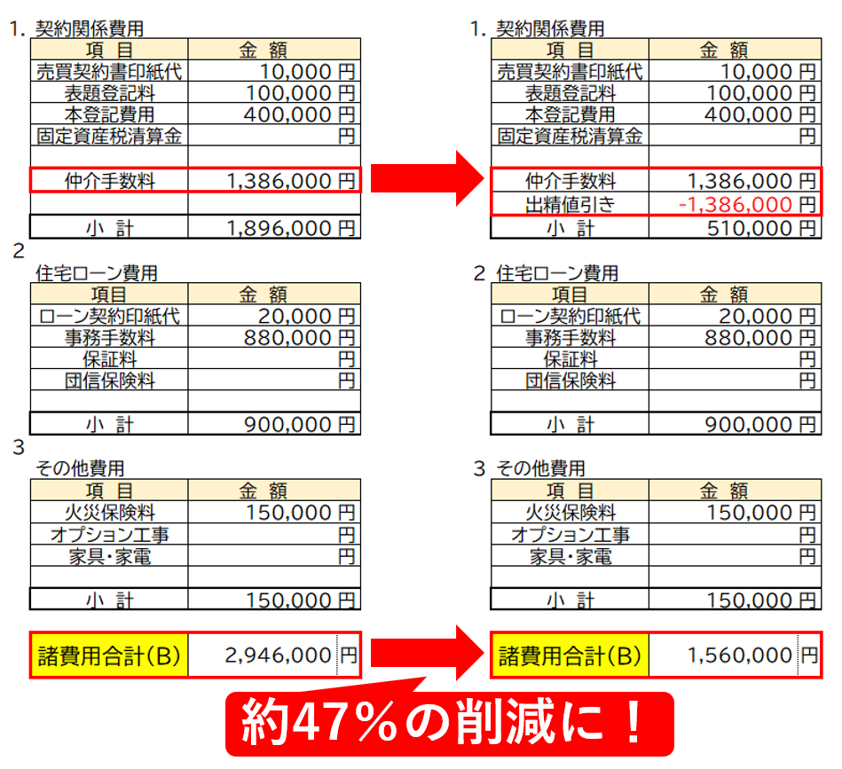 仲介手数料が無料になることで、初期費用全体のおよそ47%を削減できることになりました!